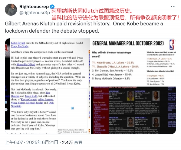 科比or麦迪⚔️美网友:他们想篡改历史&科比痛扁他们统治了时代