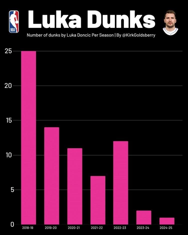 东契奇各赛季扣篮数