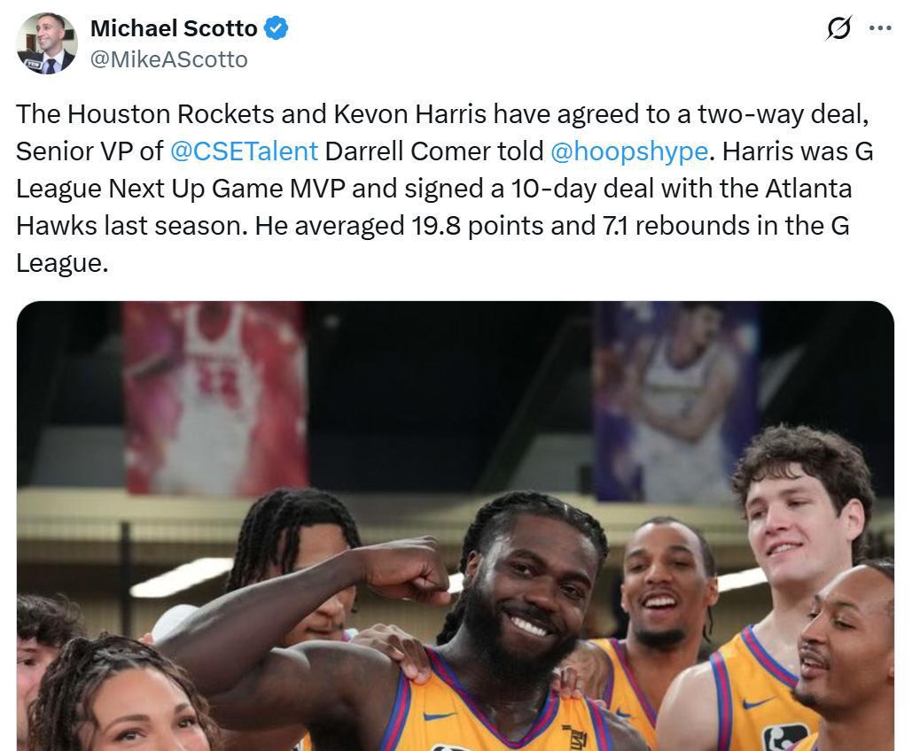 在裁掉兰代尔的同时,火箭队又签下一名新援,根据HoopsHype记者Scotto报道,火箭队用一份双向合同签下了凯文-哈里斯。